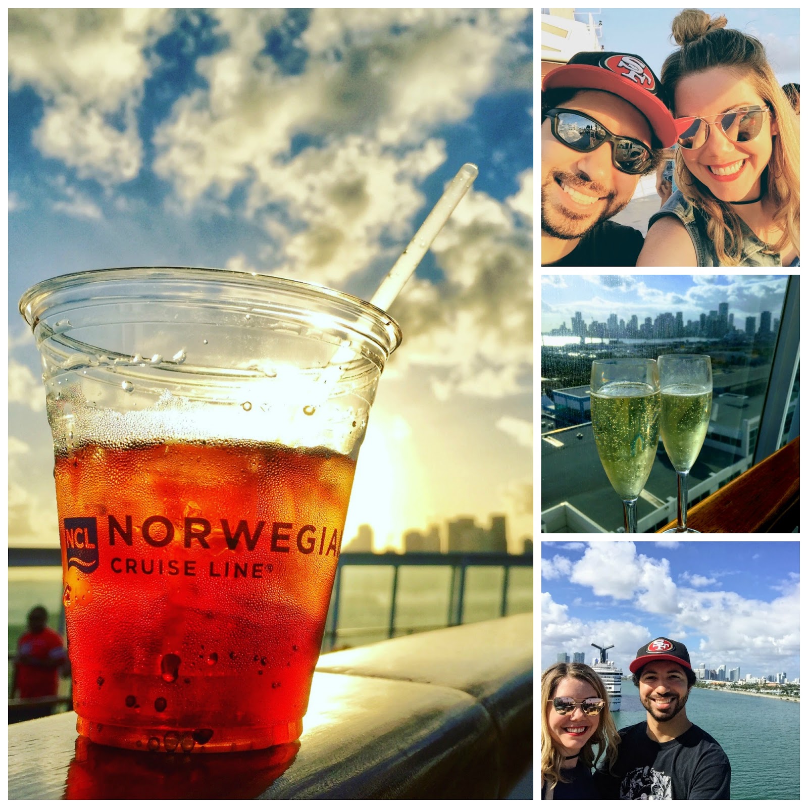So, Friday we got to the ship around noon. Even though it doesn't leave until around 5pm, you can get on, drop your bags off at one of the restaurants, and then start enjoying the OPEN BAR + Food!